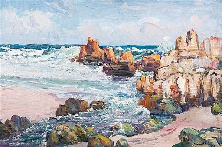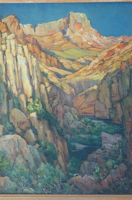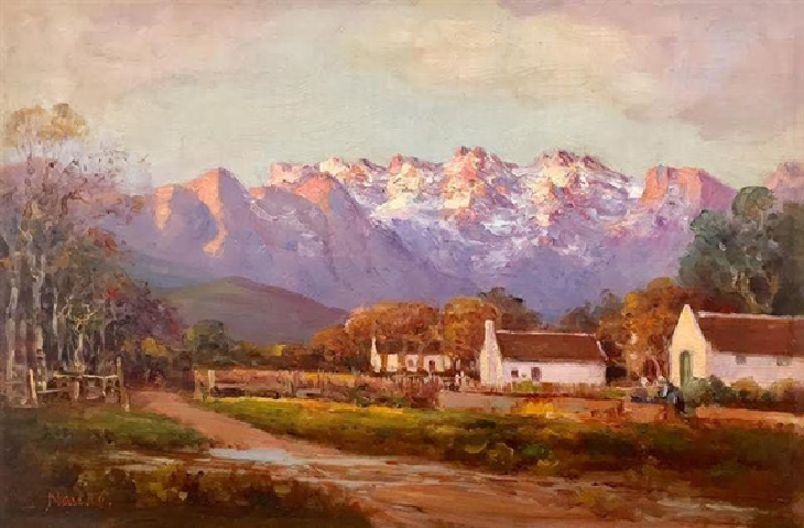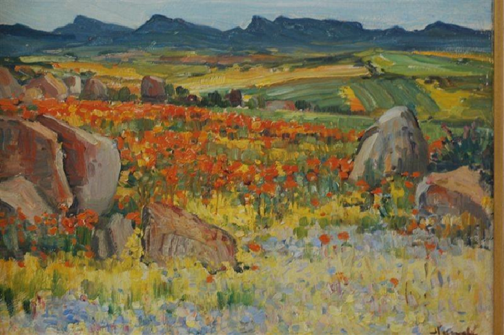When we finished singing, Pieter would fetch the black kettle for coffee around the fire. Then we would talk again about the colourful autumn just passed and we’d admire his completed painting which was begun on that day in the veld. We’d enjoy again together the rich valley where the late autumn sun shone on the farm-houses and vineyards, the misty blue, deep gorges